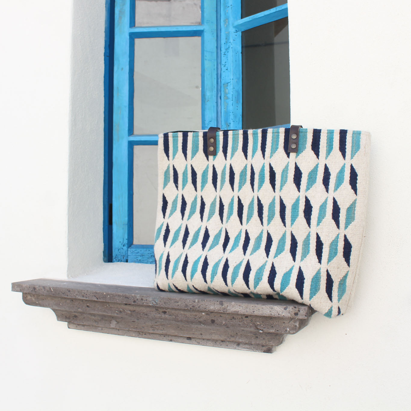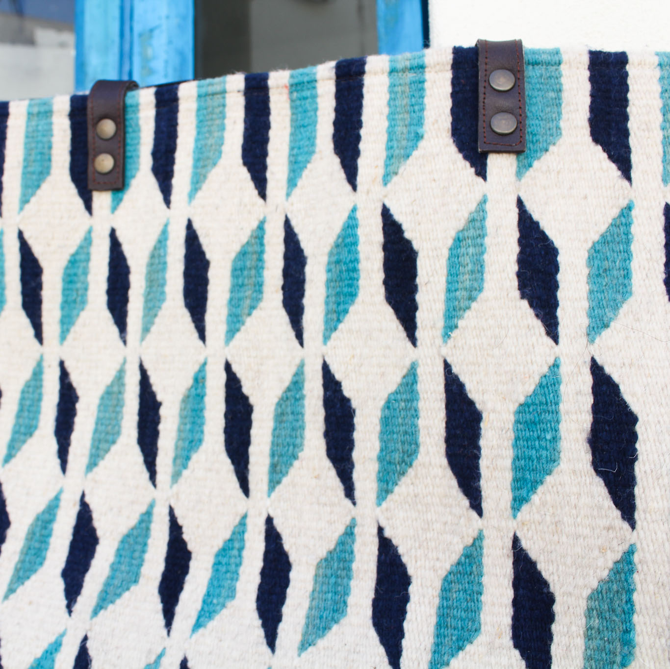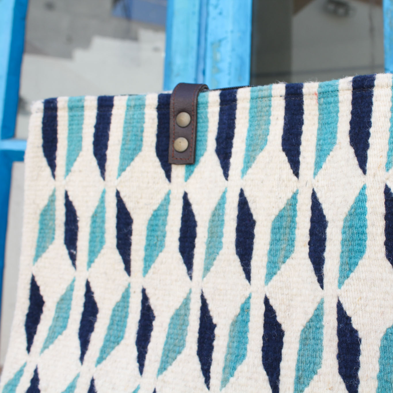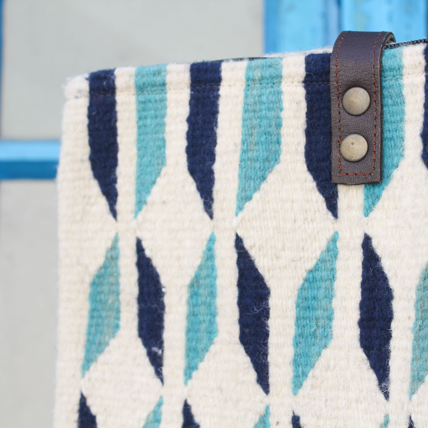 Bolso elaborado con lana teñida con tintes naturales en un proceso artesanal de Telar de Pedal.